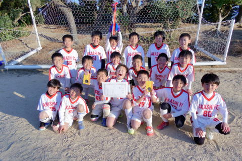 2チームに分かれて出場し、21人でサッカーを楽しみました。準決勝では明石FC対決も実現し、PK戦までもつれる接戦でした。子供たち同士で指示を出し合ったり、励ましあったりと声をかけ合うなど試合を重ねるごとに成長が見られました。